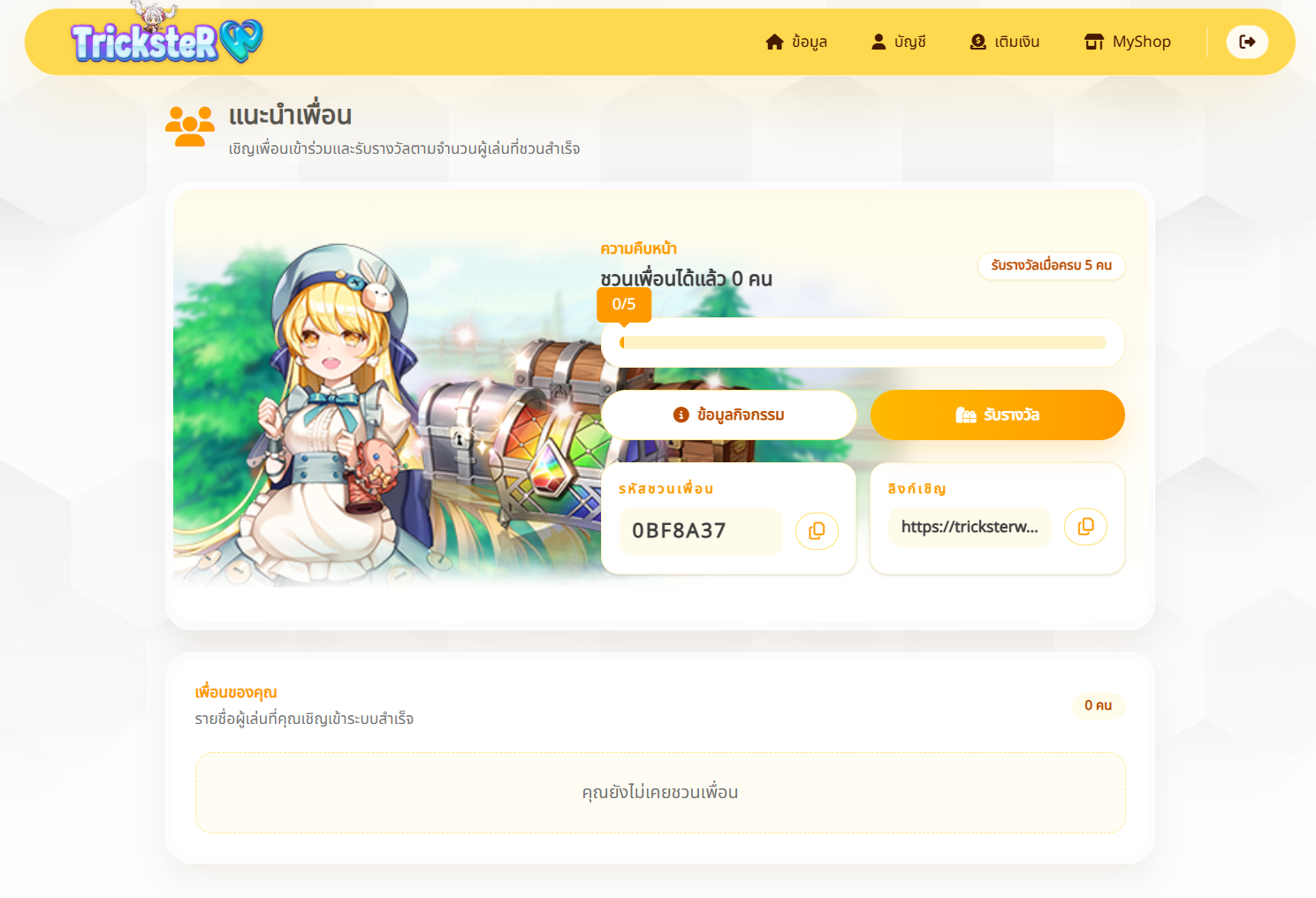ผู้เล่นสามารถนำรหัสเชิญเพื่อน หรือ ลิ้งส่งให้เพื่อนๆของคุณ