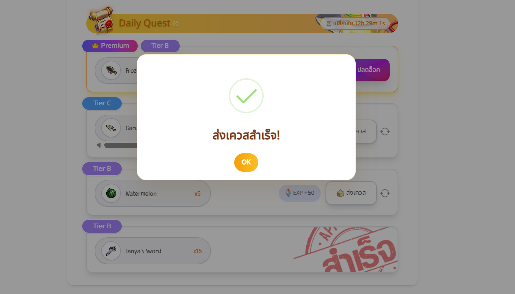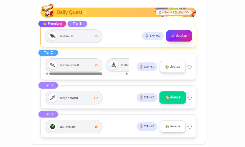 • ทำ Daily Quest ส่งมอบไอเทมทุกวัน เพื่อรับ EXP