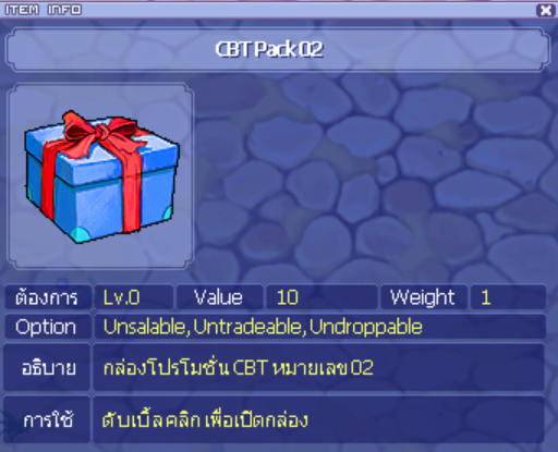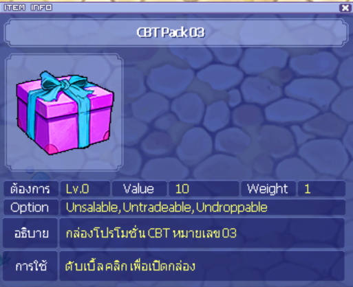 โดยผู้เล่นจะได้รับแพคที่ทำการซื้อทั้งในช่วง CBT และ OBT