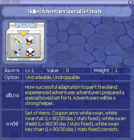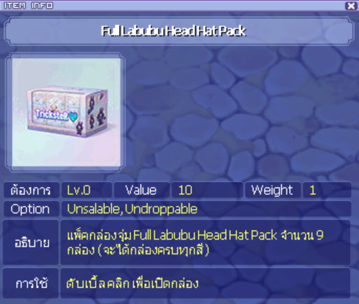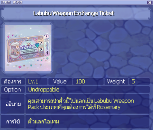 โดยผู้เล่นสามารถเข้าไปดูข้อมูลไอเทม และ ซื้อได้ที่ลิ้งด้านล่าง